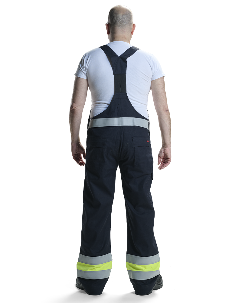 Flame-retardant reflective tape Extremely high visibility fabric Two back pockets Cargo pockets Front pocket